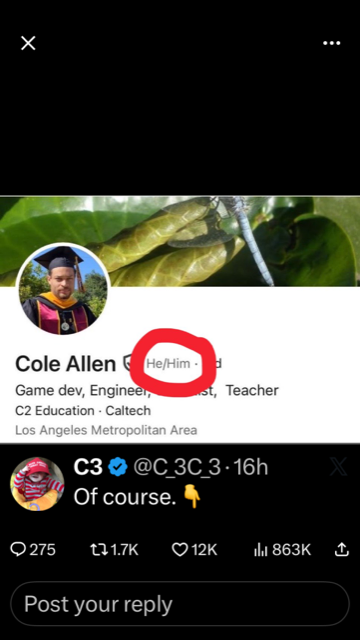 Delgaudio said "Pro-Trans accused shooter Cole Allen used pronouns on all his social media posts." Credit C3 account on twitter.