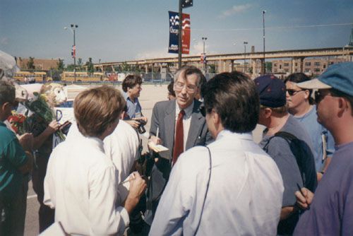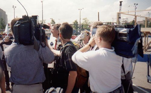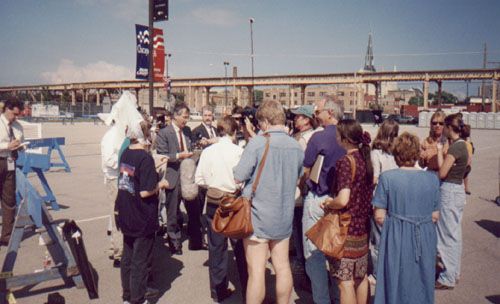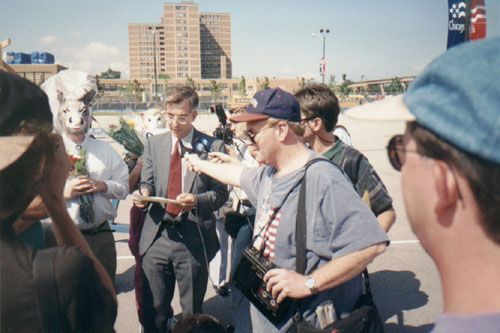 Delgaudio addresses national news media at Chicago Illinois Democratic Convention news conference to defend traditional family values.