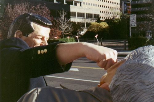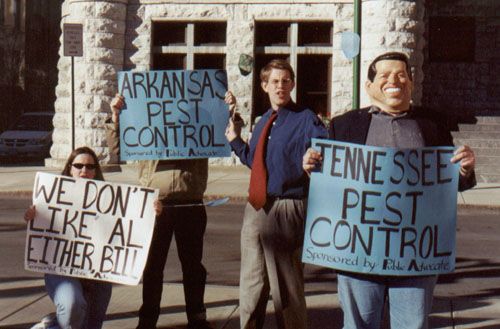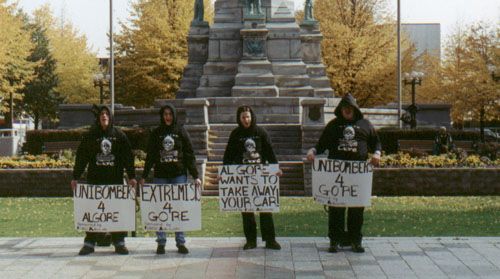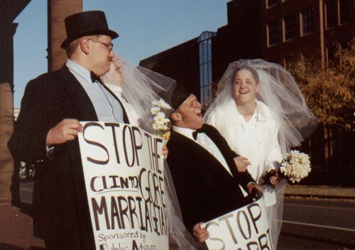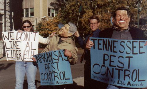 Ted Kennedy Control Police, Arkansas Pest Control Squad, Unabombers for Gore, and the Stop the Marriage Tax Bride and Groom Squad tour and hold news conferences in New York's top ten cities.