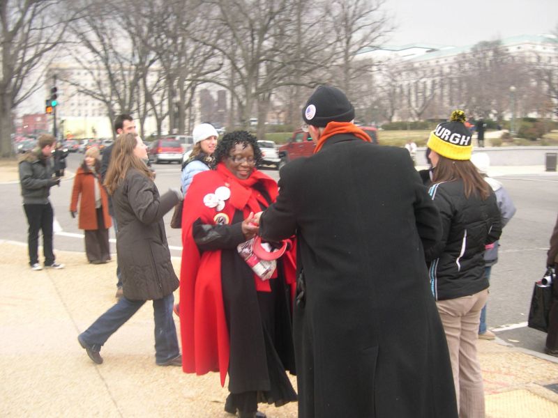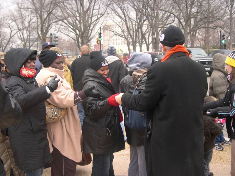 100,000 Citizens show their support for traditional marriage by proudly wearing "Preserve Traditional Marriage" red white and blue pins and stickers at the Presidential Inauguration.
