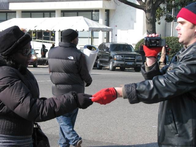 For many hours in the freezing winter weather, thousands show their support for tradtional marriage by wearing the Preserve Marriage Pin or Sticker. PA volunteers video tape hundreds of interviews.