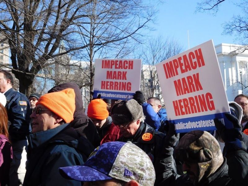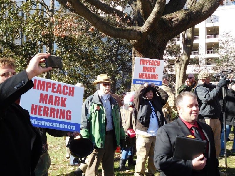 Pro-Gun Pro-liberty Legislative Day, Impeach Mark Herring Signs held aloft