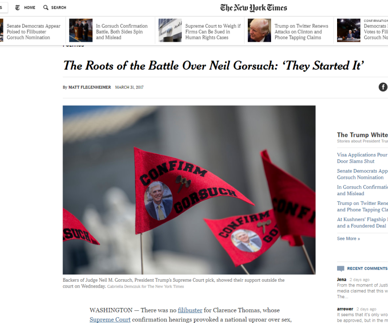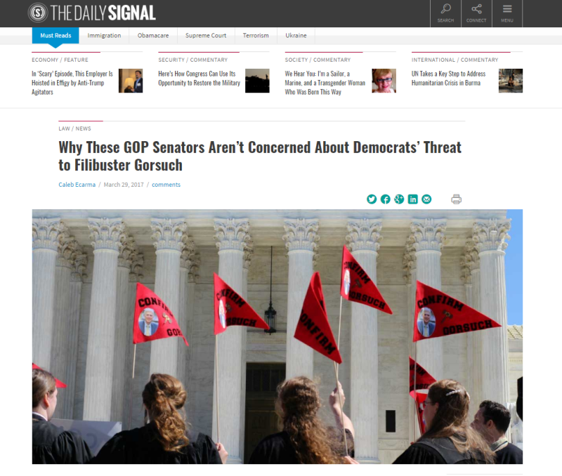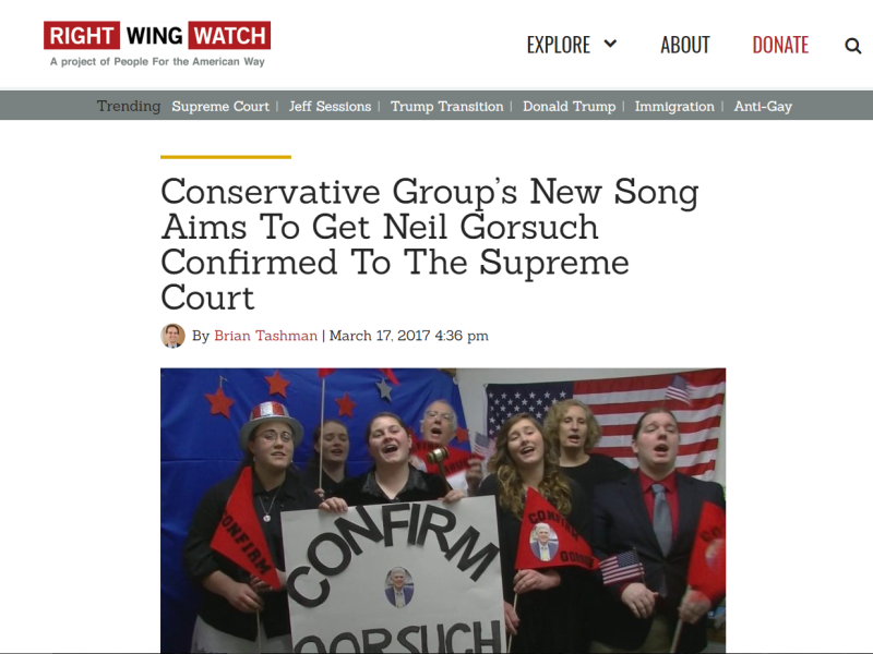 Screen Shots Media Coverage of Gorsuch for Supreme Court Campaign (partial)