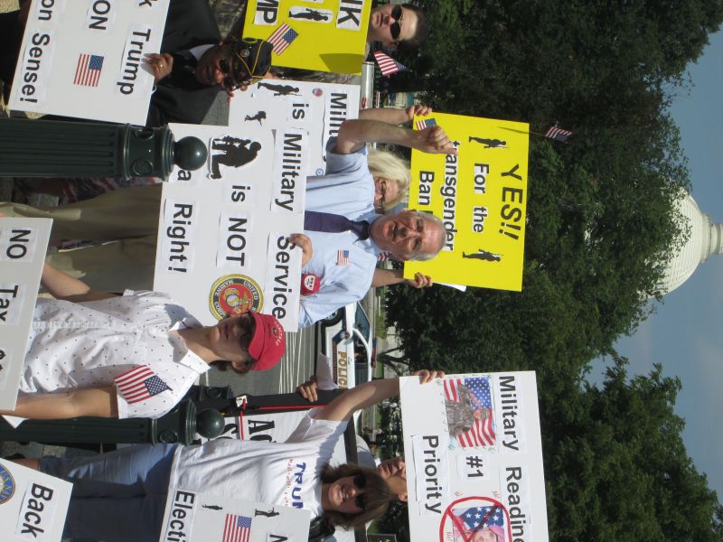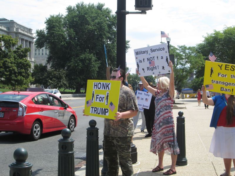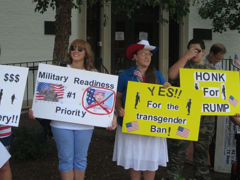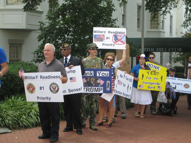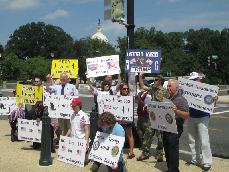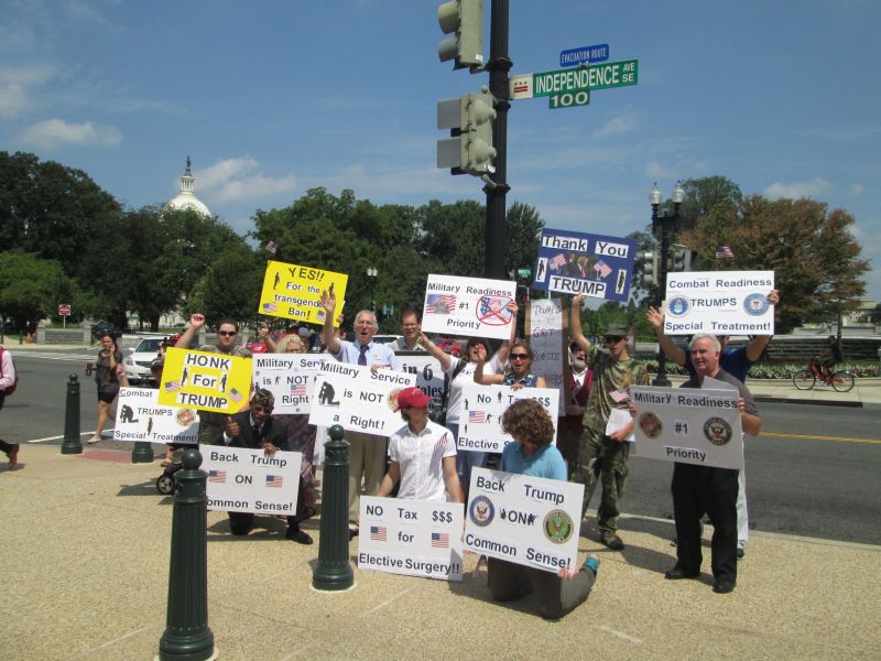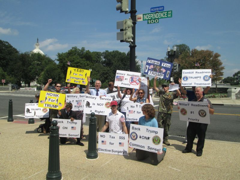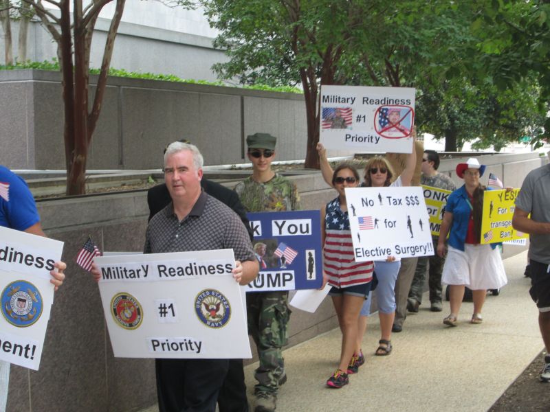 Supporting Trump's Transgender Policy in front of the RNC Building