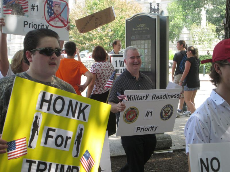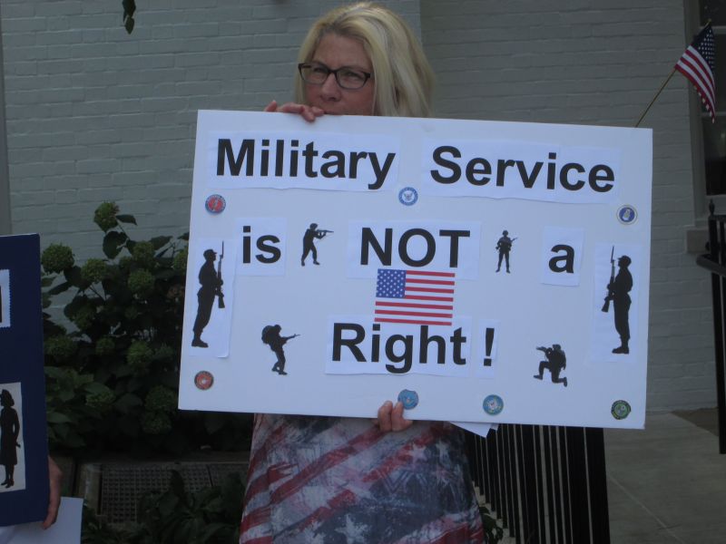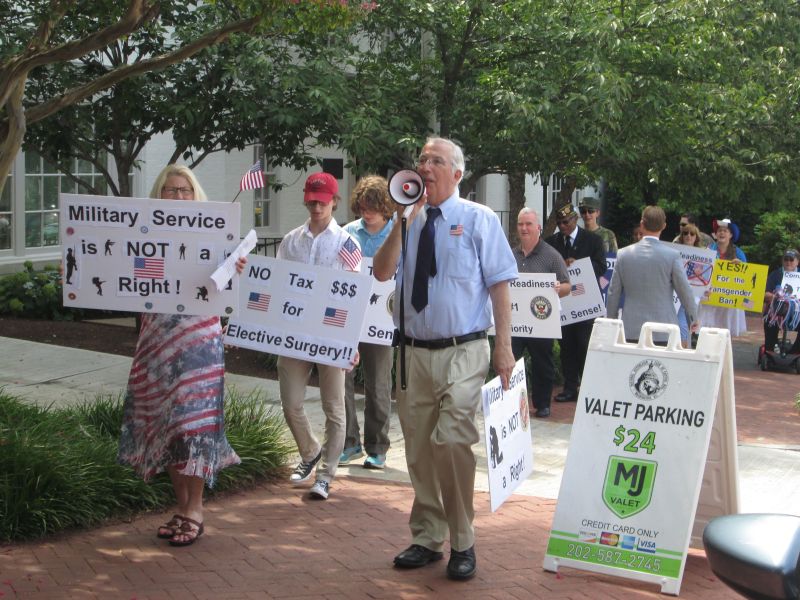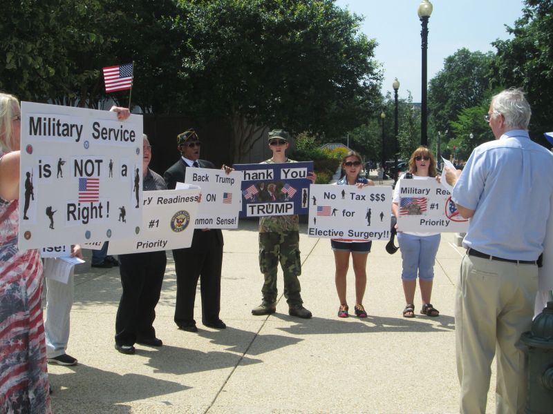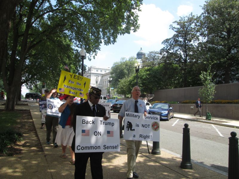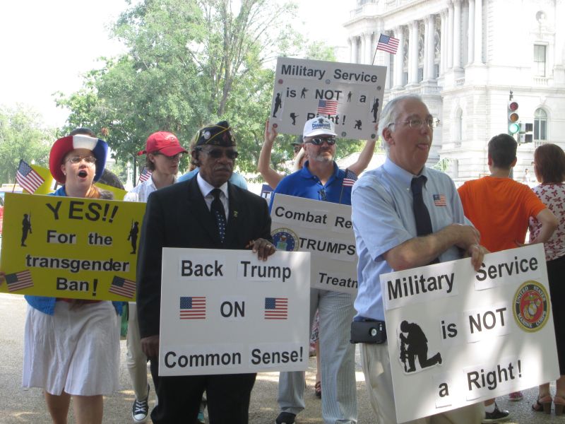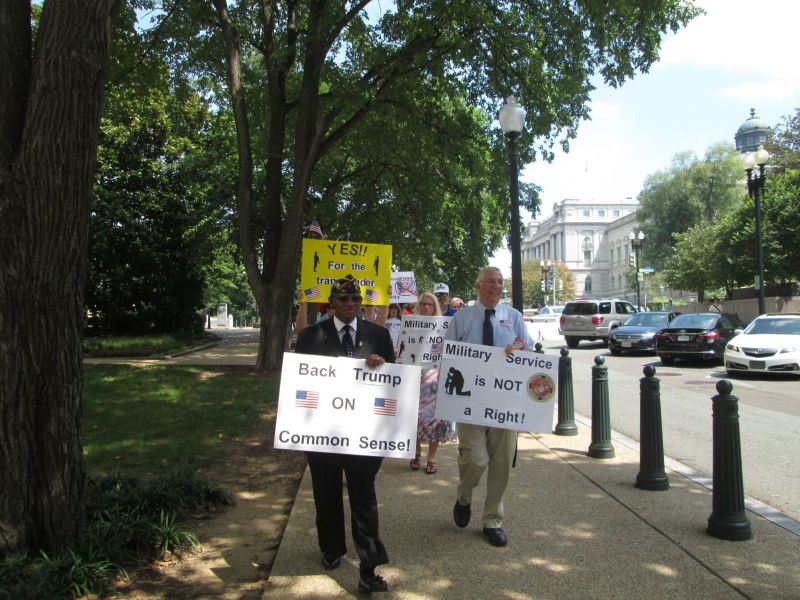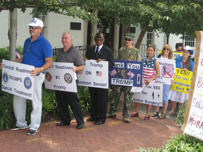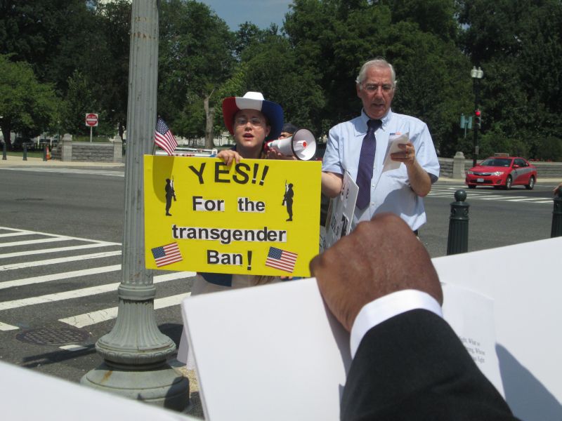 Supporting Trump's Transgender Policy in front of the RNC Building