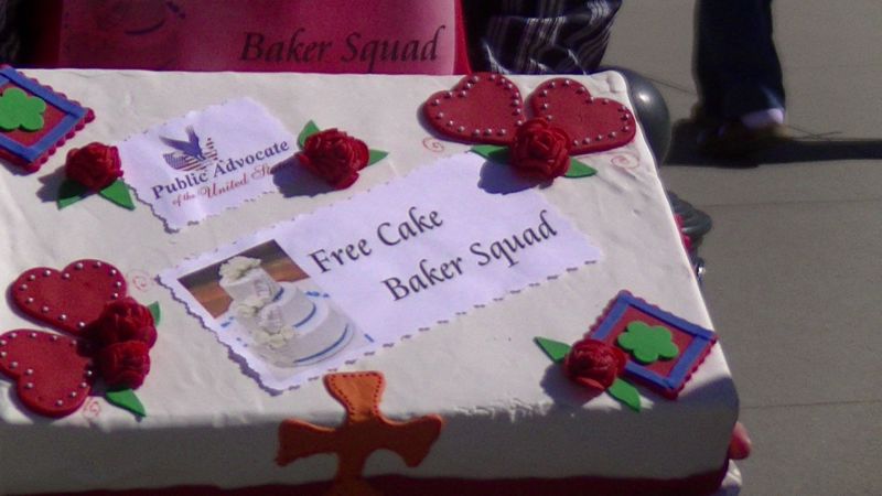 To help dramatize that legal brief we introduce today the Free Cake Baker Squad comprised of cowboys and bakers to ask the public to cowboy up and help rescue the kidnapped Masterpiece Cakeshop baker from the anti-Christian gang," says Eugene Delgaudio, President of Public Advocate.