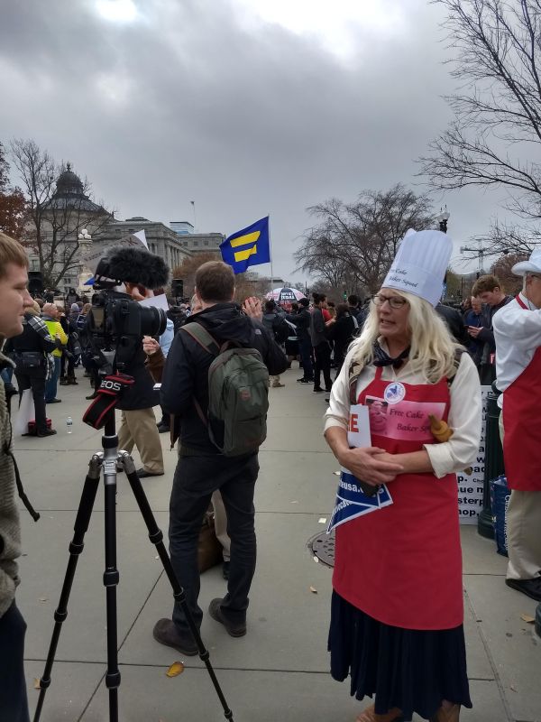 Public Advocate of the U.S. President Eugene Delgaudio and volunteers support the cakebaker Jack Phillips at the Supreme Court Tuesday December 5 as he faces his Supreme Court hearing.