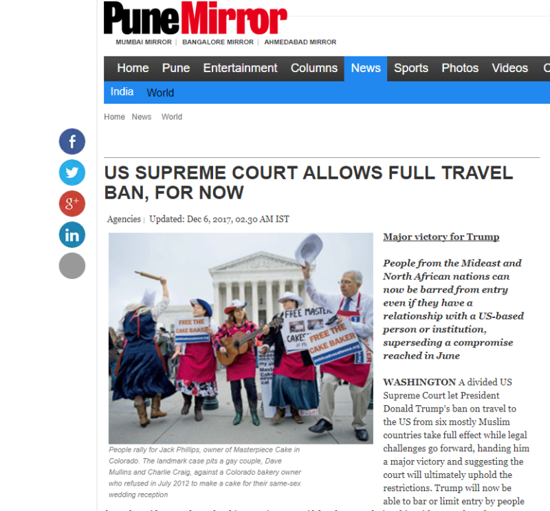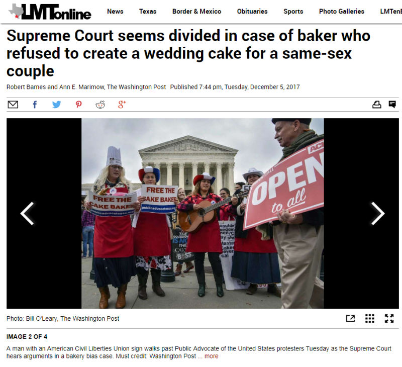 Washington Post Front Page, 100's of News Media report on frontpage: Free the Cake Baker Squad!