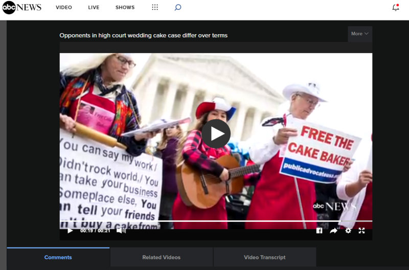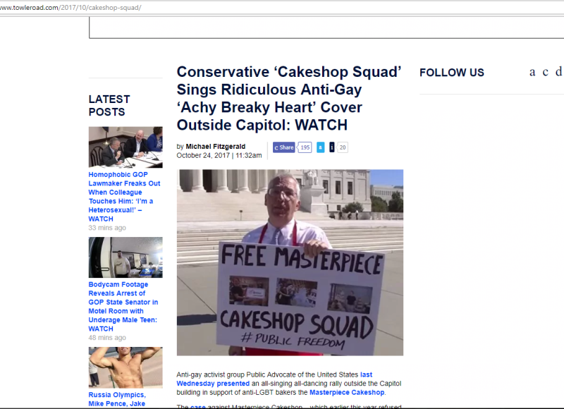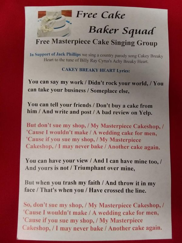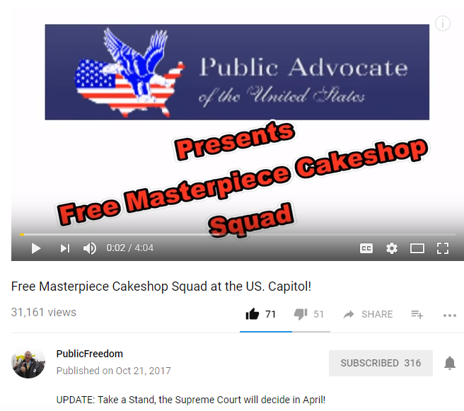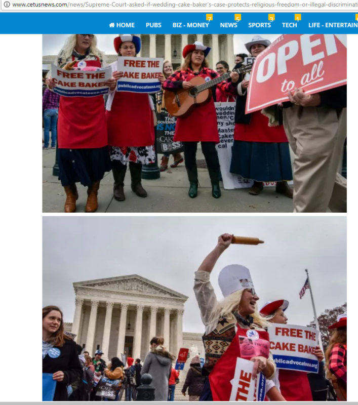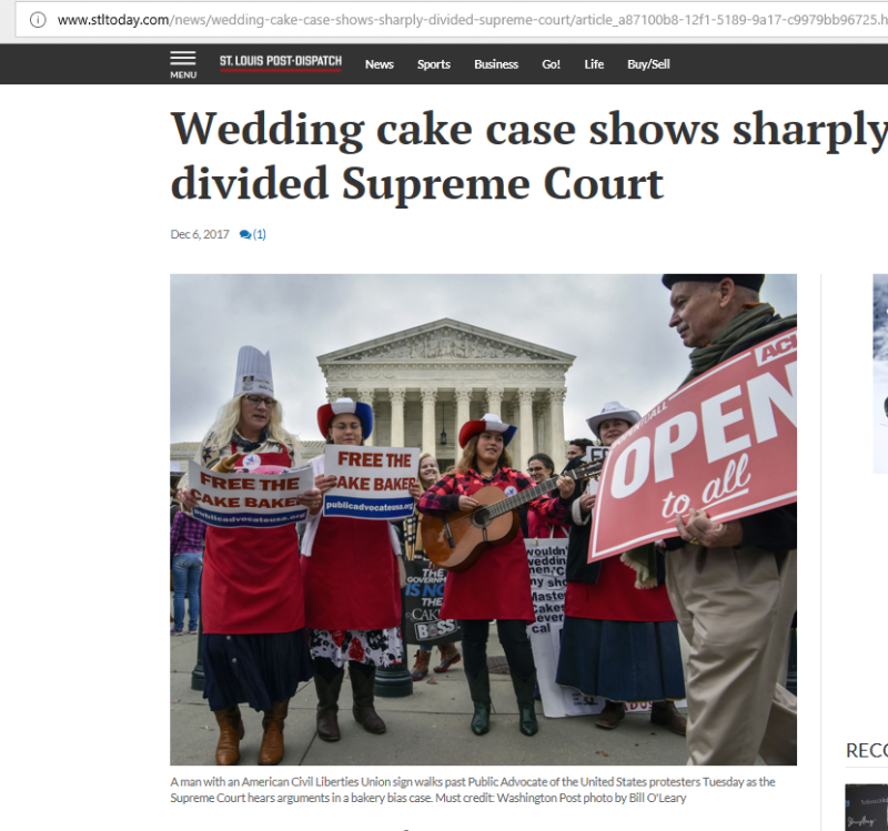Public Advocate of the U.S. Free the Cake Baker Squad sing at the Supreme Court on Dec. 5th and end up on the Front Page of the Washington Post and the frontpages of 100s of other news media. Check out some of the coverage below!