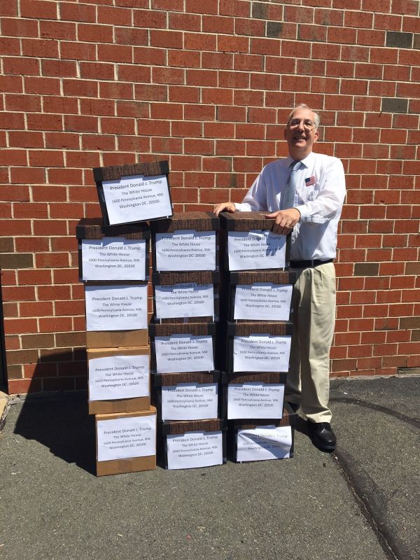 Public Advocate had a letter to President Trump inside each box, which in summary stated: