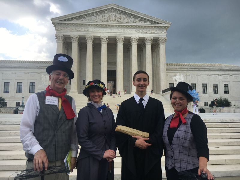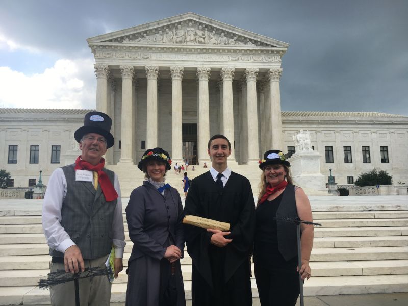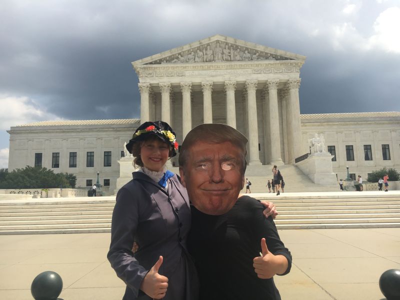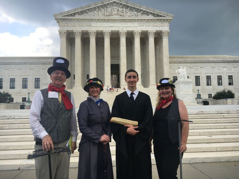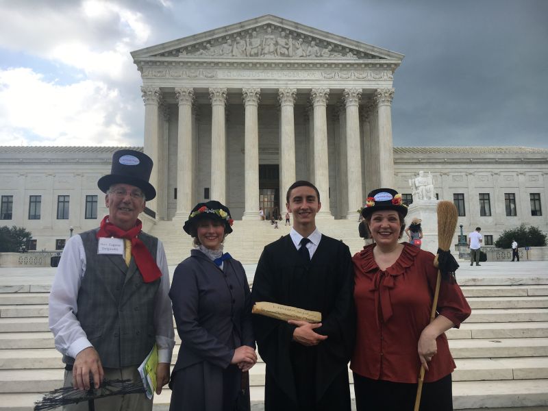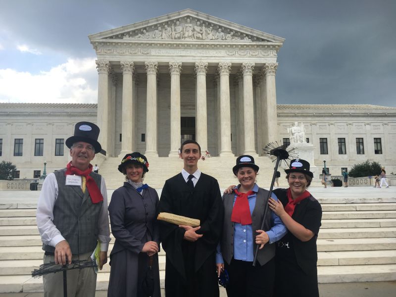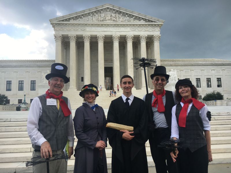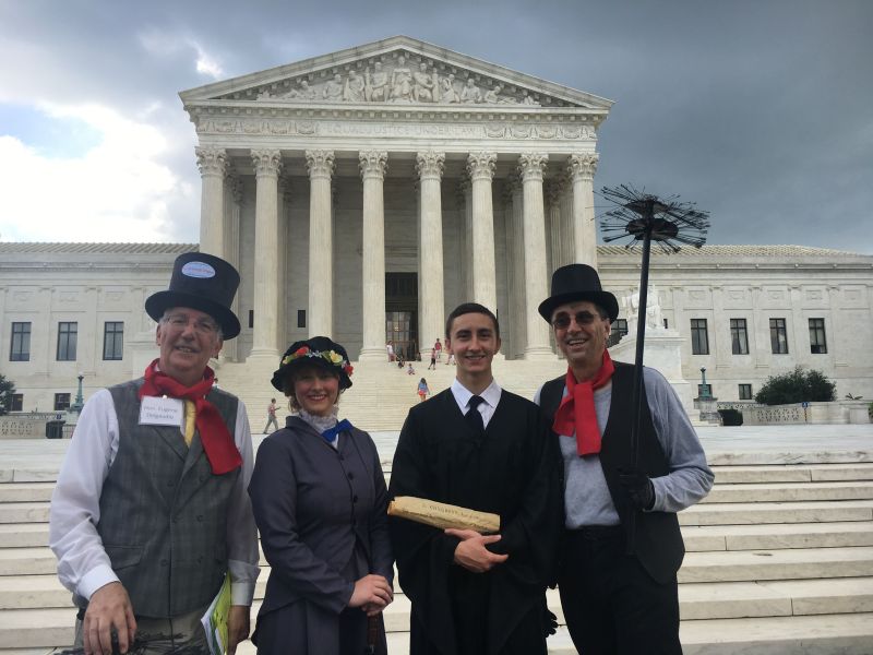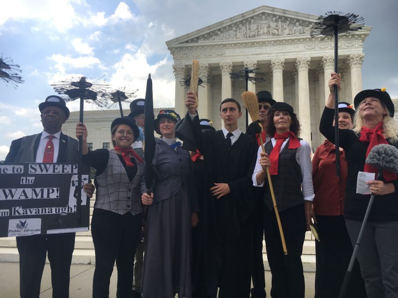 They dressed up in period costumes and wielded "Chimney Sweep brooms" while calling for Judge Kavanaugh and Trump to "sweep out the Swamp!"