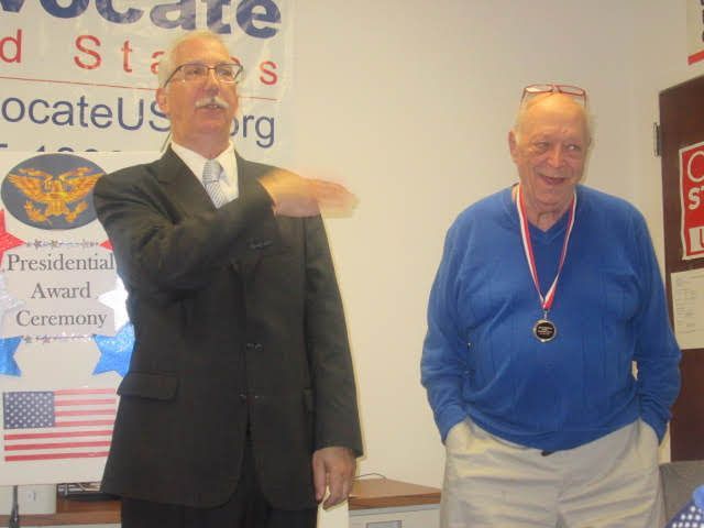 Aubrey Burrow gets Presidential Medal from President Delgaudio