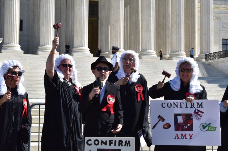 The Amy Coney Barrett Singers performed live at the Surpreme Court and Seante Buildings on Thursday Oct. 15th, 2020. Permission granted in advance to use the photograph, song or videos.