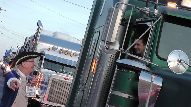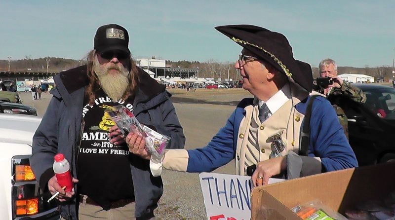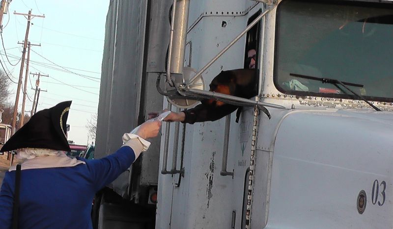 George Washington (Eugene Delgaudio) giving free snacks to Trucker in convoy in Hagerstown Convoy -