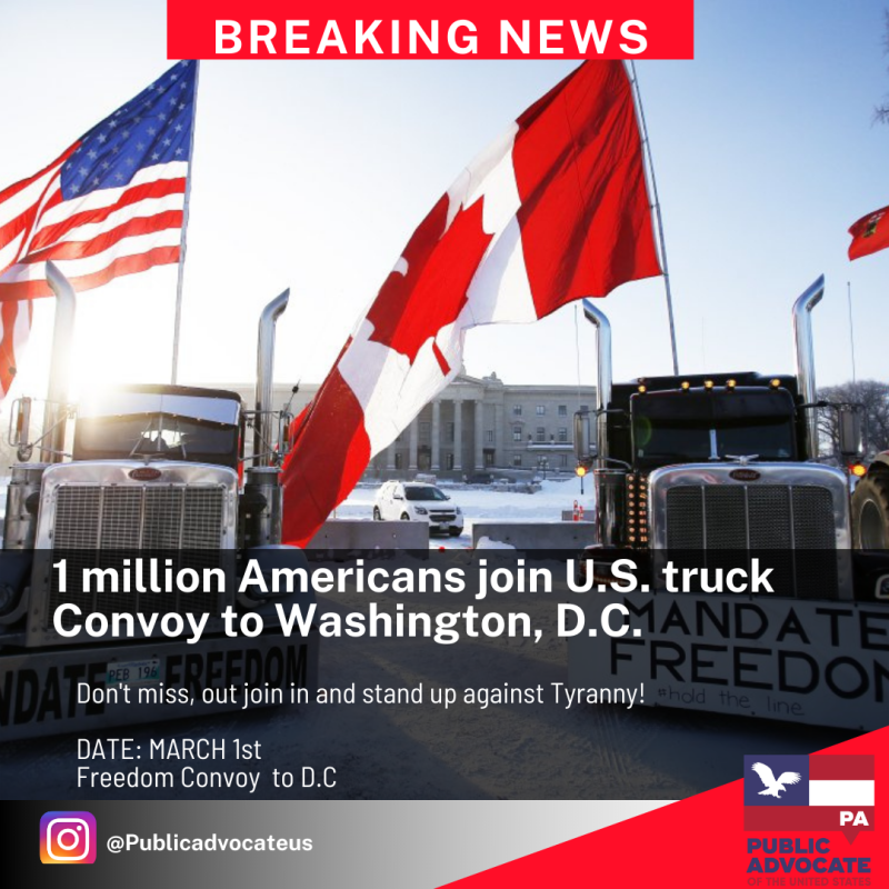 Public Advocate of the U.S. is supporting the American Truckers Freedom convoy -