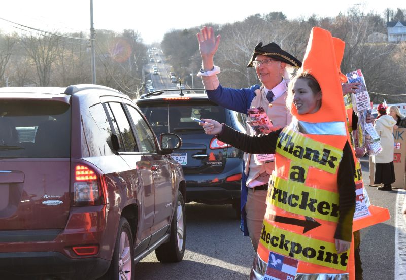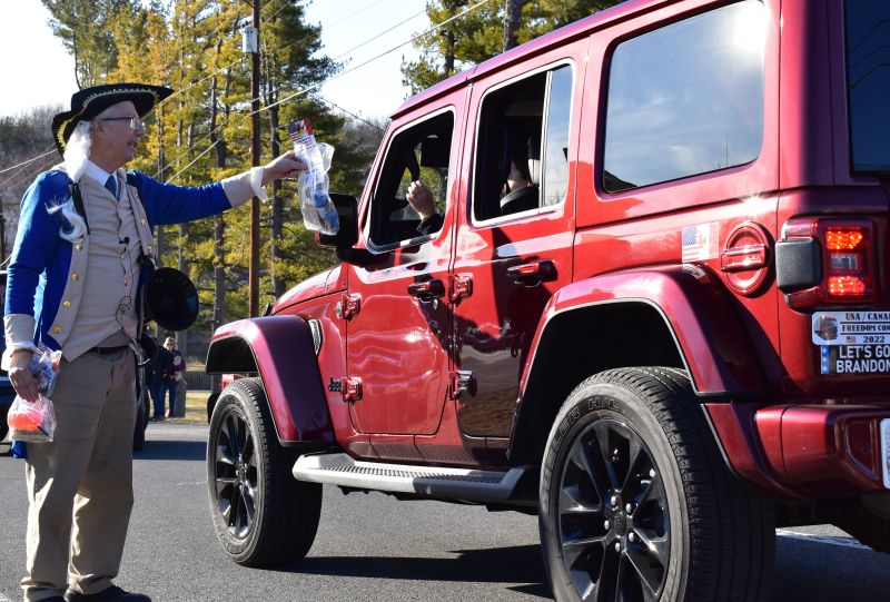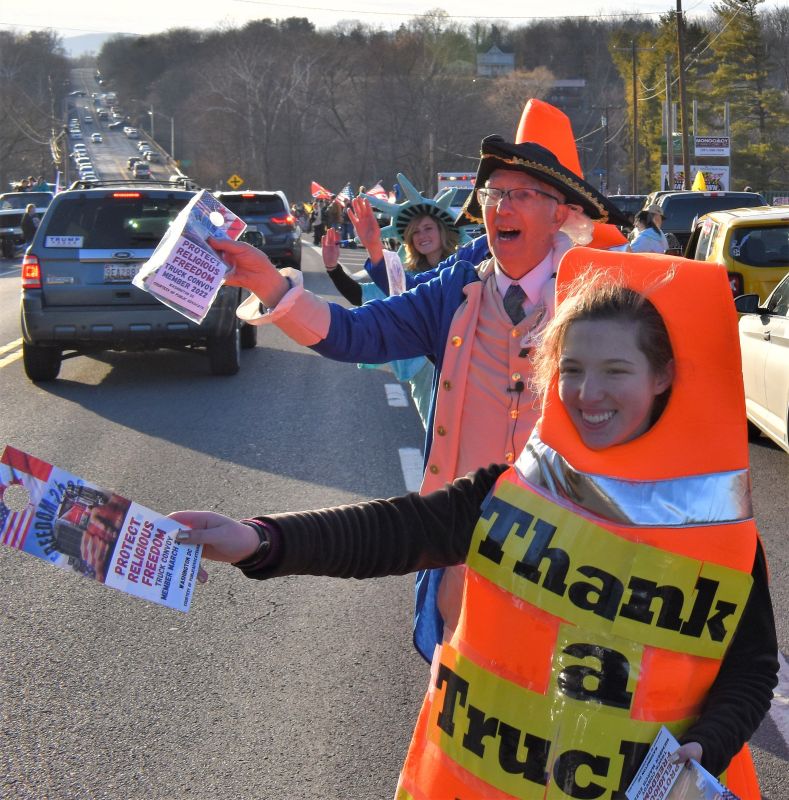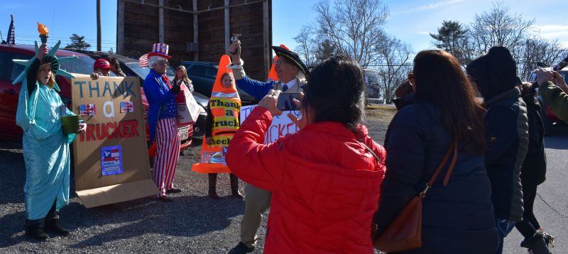 George Washington (Eugene Delgaudio) giving free snacks to Trucker in convoy in Hagerstown Convoy -