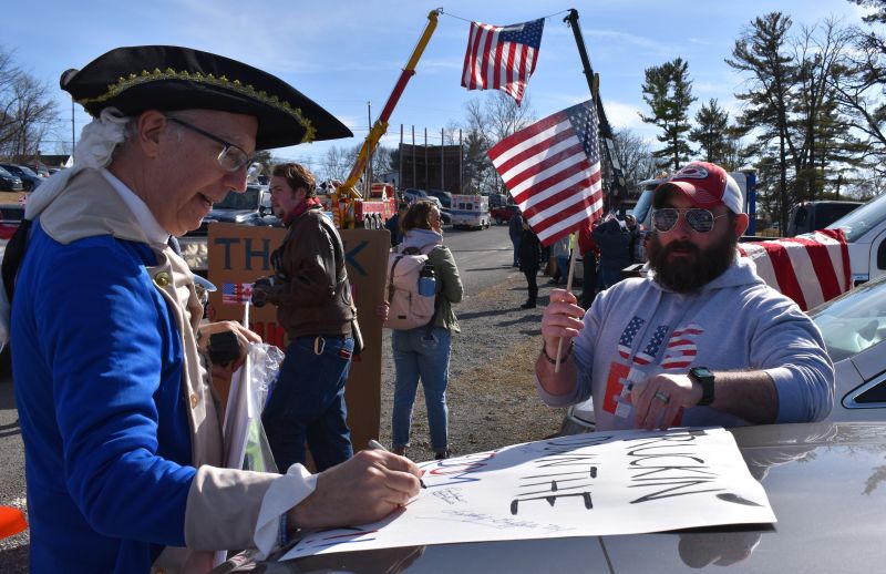 George Washington (Eugene Delgaudio) signing the Truckin for Freedom sign, Hagerstown Convoy -