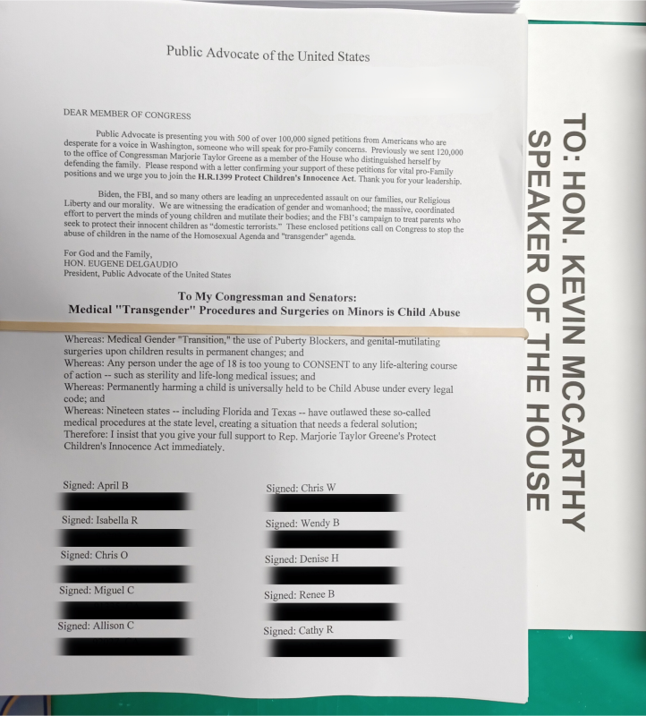 Public Advocate Delivers 100,000 Protect Children's Innocence Petitions to Congress